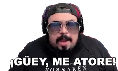 Agbean3r, wearing sunglasses and headphones, exclaims '¡Güey, me atoré!' in a moment of being stuck or surprised.