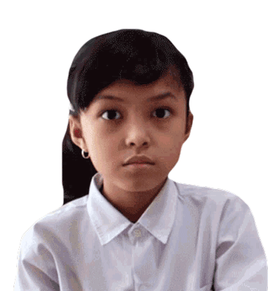 Keira Charma, a young girl in a white shirt, stares with a nervous and confused expression, perfect for showing perplexity.