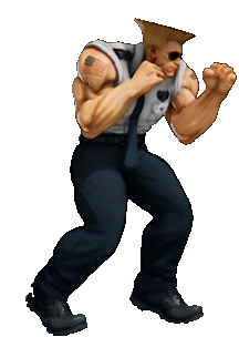 Guile from Street Fighter V stands in his iconic fighting stance, ready for battle with clenched fists.