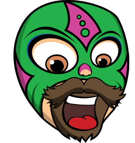 Guino Compa, a Lucha Libre wrestler, winks playfully then opens his mouth wide in a surprised or shouting expression.