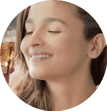 Alia Bhatt smiles charmingly while gulping down a refreshing cold drink, captured in a delightful animated sticker.