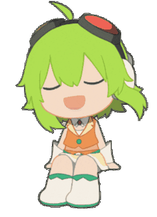 a girl with green hair is sitting down with her eyes closed and smiling