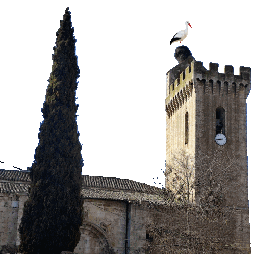a clock tower with a stork sitting on top of it