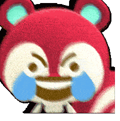 An animated sticker of Gummy Gummychan, possibly from Animal Crossing or Fire Emblem, laughing joyfully.