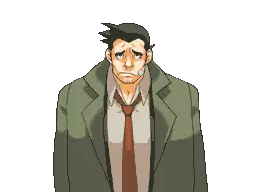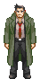 Gumshoe, the pixel art detective, stands with his back to the viewer, wearing a classic green trench coat and hat.