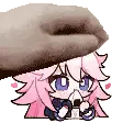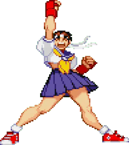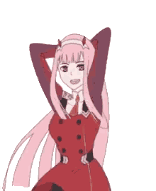 Sakura, an anime girl with long pink hair and a red dress, dances playfully with her hands behind her head, showcasing a 'gyatt' figure.