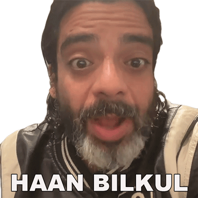 Jeeveshu Ahluwalia says "Haan Bilkul" (Yes, absolutely) with an expressive, wide-eyed look, conveying agreement or surprise.