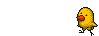 A pixelated yellow chick from Habbo Habbohotel walks across the screen in a cute, looping animation.