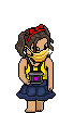 Pixel art sticker featuring a girl with curly hair, glasses, a red headband, and a camera.