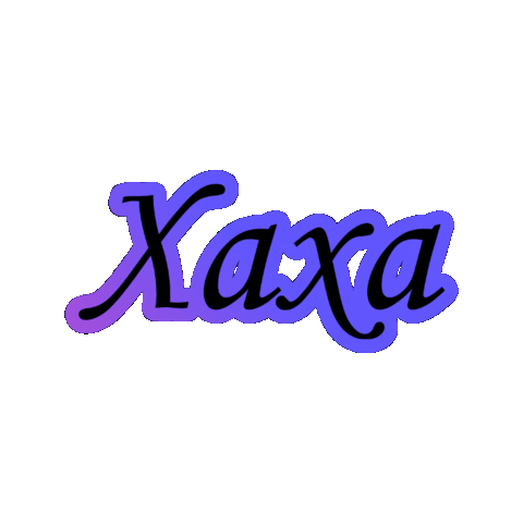 An animated sticker featuring the word 'Xaxa' in a vibrant purple and blue gradient, rotating playfully.