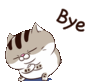 A cute cartoon cat-like creature waves goodbye with its arms raised, accompanied by the word 'Bye' and a humorous 'Hahaha' vibe.