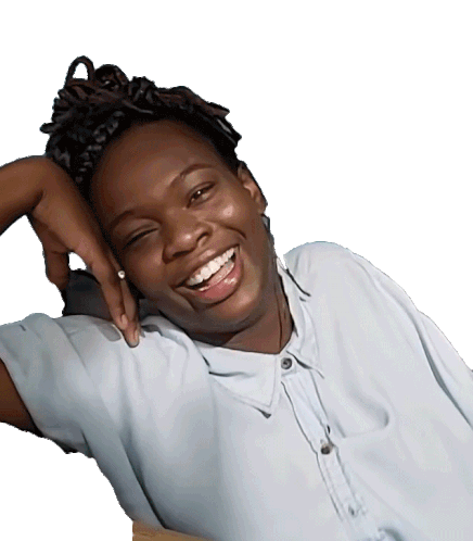 Noemia Oliveira bursts into joyful laughter, leaning back with a wide smile, expressing pure amusement.
