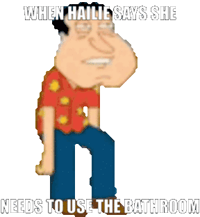Hailie Fieryrage meme featuring a pixelated character transforming into a toilet, humorously reacting to someone needing the bathroom.