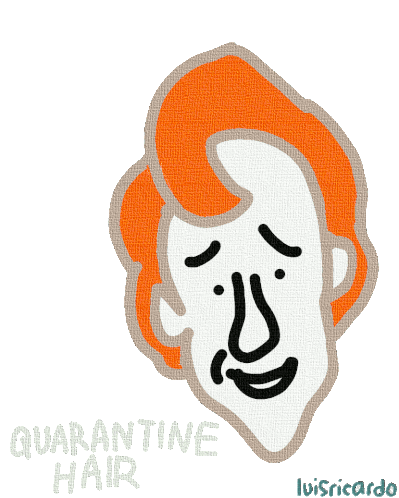 A humorous sticker featuring a cartoon face resembling Conan O'Brien with messy 'Quarantine Hair'.