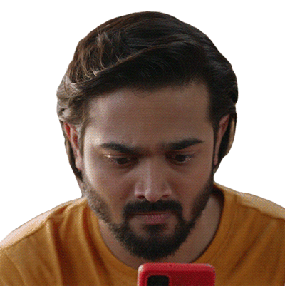 Bhuvan Bam looks surprised and shocked while looking at his phone, reacting to something unexpected.