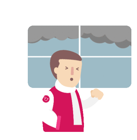 A man coughs during stormy weather, then uses the Halodoc app for medical assistance and health consultation.