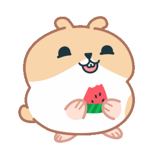 A cute animated Hammy Ham hamster happily munching on a slice of fresh red watermelon with a sweet smile.