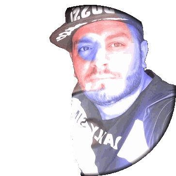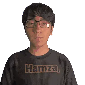 Hamza's striking animated portrait features a man with a beard and cap, illuminated by dramatic red and blue split lighting.