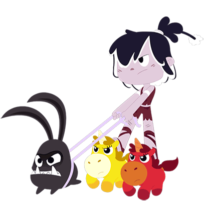 Hanazuki Full Of Treasures character, a purple unicorn-like creature, charges forward with energy.