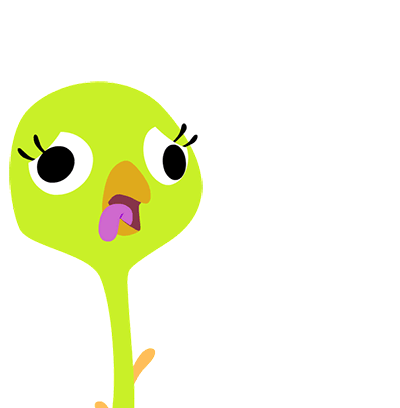 Hanazuki Full Of Treasures character, a lime-green creature with a long neck, playfully sticks out its purple tongue.
