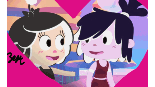 Hanazuki and Kiyoshi Hanayoshi share a heartwarming moment in a pink heart frame, celebrating their 'Best Friends Forever' bond.