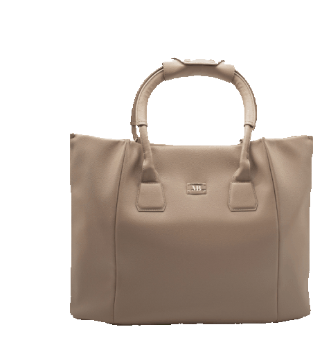Elegant nude-colored handbag by Melina Bucher, featuring a structured design and the distinctive 'MB' logo.