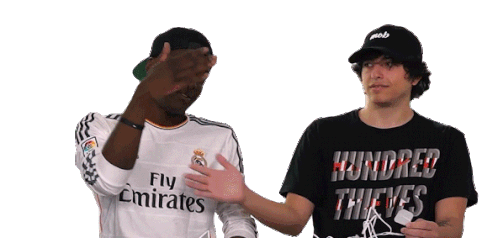 Mako and Avalanche share a friendly handshake, representing 100 Thieves and The Mob with a cool gesture.