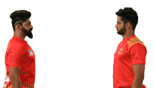 Ruturaj and Shivaji Koravi from Gujarat Fortune Giants shake hands and share a friendly greeting.