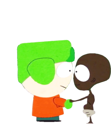 Kyle Broflovski from South Park shakes hands with Starvin Marvin, a friendly greeting between the two characters.
