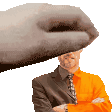 Hans, a pixel art character, looks surprised as his head is gently held by a disembodied hand.