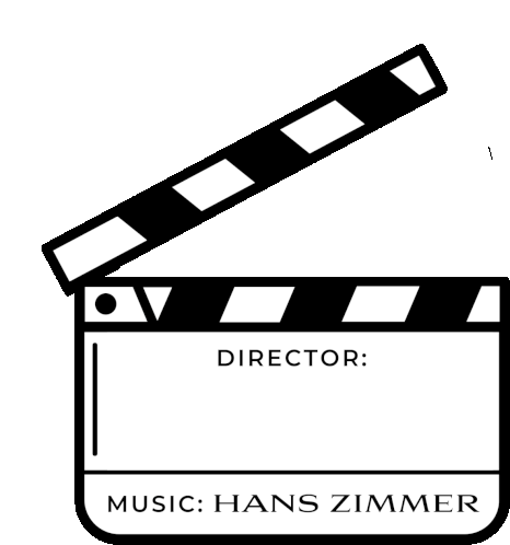 A clapperboard featuring 'MUSIC: HANS ZIMMER' and 'DIRECTOR:' for film music enthusiasts and Hans Zimmer fans.