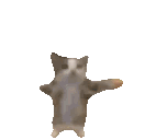 A pixelated cat stands on its hind legs, wiggling its body and arms in a happy, rhythmic dance.