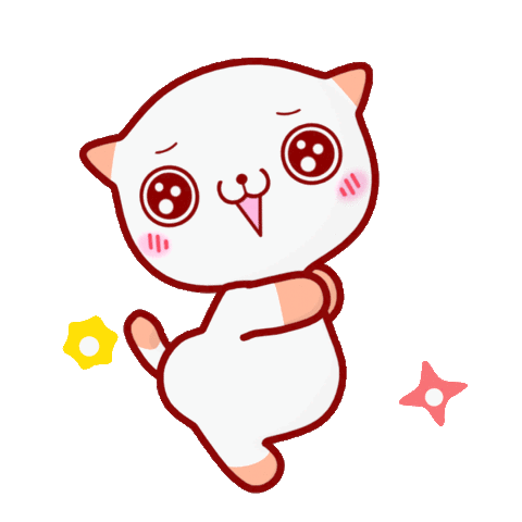 A cute, blushing cat character expresses extreme happiness and satisfaction with wide eyes and a joyful smile.