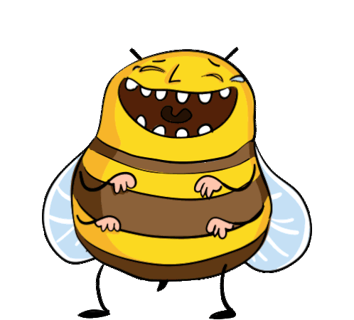 An animated sticker featuring a crazy, happy bee laughing with tears of joy, perfect for expressing extreme happiness.