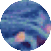 A blurred, colorful abstract image within a blue circle, conveying happy birthday wishes.