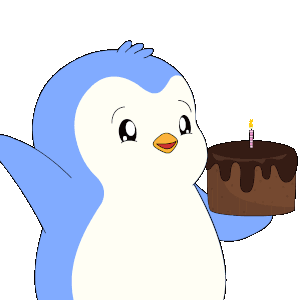 A cute cartoon penguin holds a chocolate birthday cake with a lit candle, wishing a happy birthday to a brother.