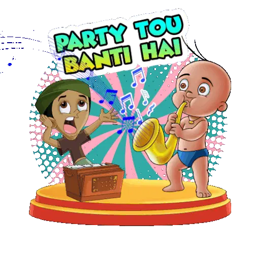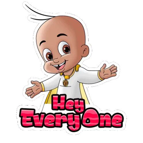 A cute Raju from Chhota Bheem pops out of a gift box with balloons, wishing a Happy Birthday.
