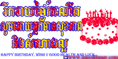 A festive animated sticker wishing 'Happy Birthday' in both English and Khmer, perfect for celebrating special occasions.
