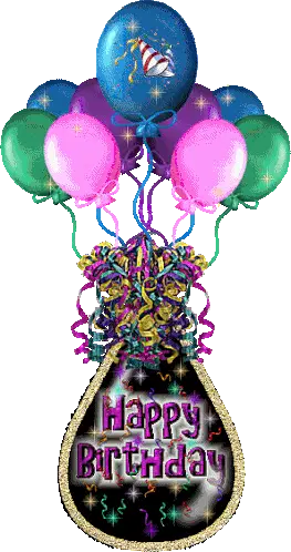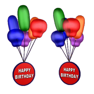 Vibrant animated Happy Birthday balloons, featuring colorful floating balloons and a clear 'Happy Birthday' message. Perfect for celebrations.