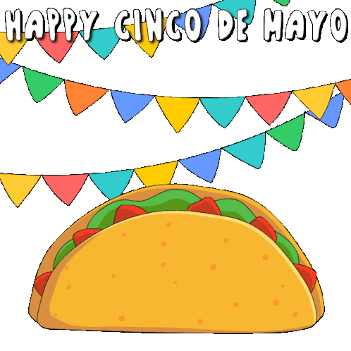 A festive penguin in a sombrero plays guitar on a taco, celebrating Cinco de Mayo with colorful flags.