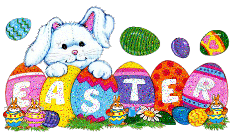 A cheerful Easter bunny sticker with sparkling eggs, perfect for spreading holiday joy and festive greetings.