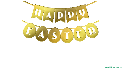 A festive gold banner with pennants spelling 'HAPPY' and eggs spelling 'EASTER' for a joyful holiday greeting.