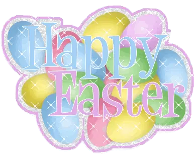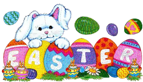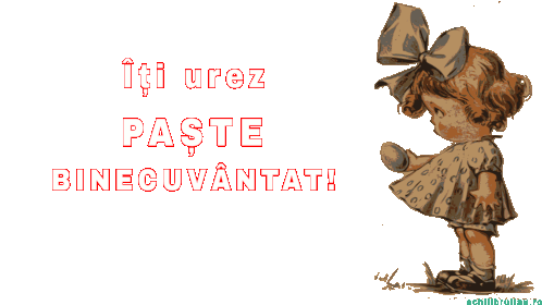 Charming animated sticker wishing a Blessed Easter, featuring a cute little girl with a bow and an Easter egg.