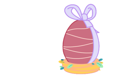 Piu Piu, the adorable yellow baby chick, happily hugs a large decorated Easter egg nestled in a bed of leaves.