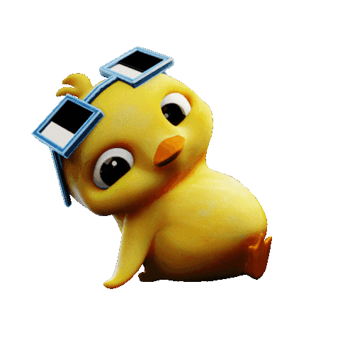 Quack, the adorable yellow chick, wearing cool sunglasses and holding a small red heart, spreading happy vibes.