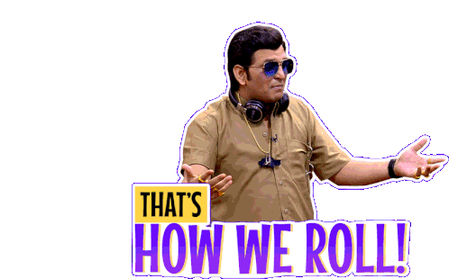 A man in sunglasses and headphones gestures, displaying 'That's How We Roll!' with a happy, funny vibe.