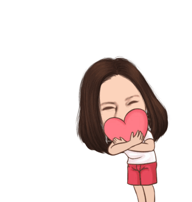 A happy cartoon girl with closed eyes and open arms is surrounded by floating pink and red hearts, expressing love and joy.