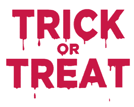 Animated red text spells out 'TRICK OR TREAT' with a spooky dripping effect, perfect for Halloween greetings.