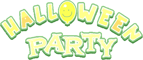 Celebrate Halloween with this festive sticker featuring a smiling face, balloons, and spooky party elements.