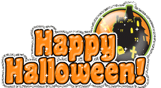 A cute penguin in a wizard hat peeks from behind a skull and crossbones tombstone, wishing 'Happy Halloween'.